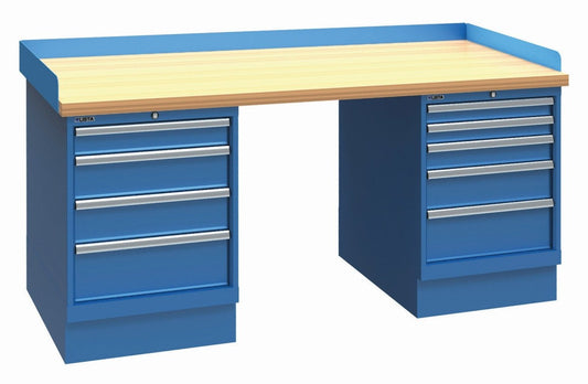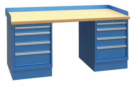 LISTA Technical Workbench 60"W x 30"D x 35 1/4"H - Butcher Block Top, Dual 4-Drawer Storage Pedestals
