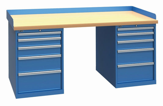 LISTA Industrial Workbench – 72” W x 30” D x 35 1/4” H, Butcher Block Top with Two 5-Drawer Cabinet Pedestals
