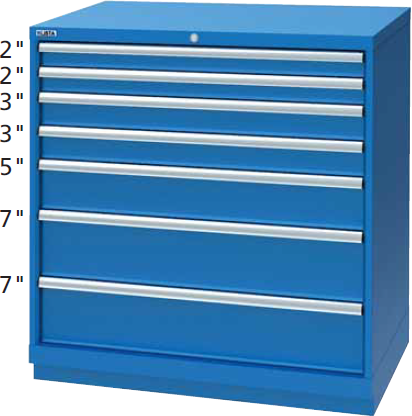 This LISTA bin cabinet allows you to save space, get organized, and reduce inventory all while having easy access to your parts, tools, and supplies. This 7 drawer LISTA modular drawer unit is easily applied to small tool storage and for small items such as bolts, nuts, and washers. Deeper drawers leave room for larger tools like drill motors, sanders, grinding wheels, and bulk supplies in the lower and bottom positions.
