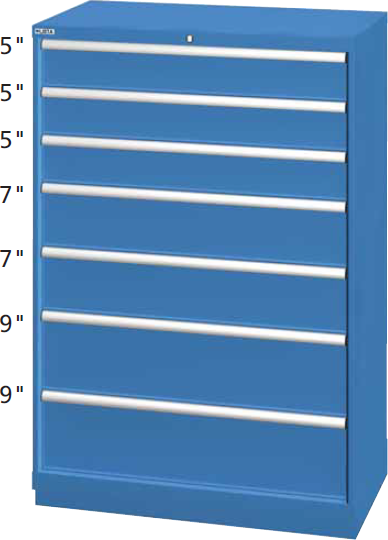 This LISTA bin cabinet allows you to save space, get organized, and reduce inventory all while having easy access to your parts, tools, and MRO supplies. This 7 drawer configuration is easily applied to small tool storage and includes deeper drawers for larger tools like drill motors, sanders, grinding wheels, and bulk supplies in the lower and bottom positions.