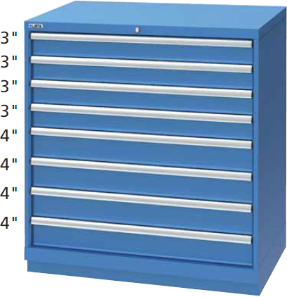 This LISTA modular cabinet allows you to save space, get organized, and reduce inventory all while having easy access to your parts, tools, and supplies. This 8 drawer combination is easily applied to small tool storage and for small items such as bolts, nuts, and washers. Deeper drawers leave room for larger tools like drill motors, sanders, grinding wheels, and bulk supplies in the lower and bottom positions.