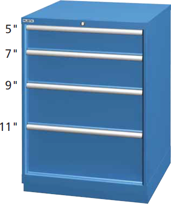 With 4 drawers and 29 compartments, this cabinet provides ample storage for tools, parts, and other workshop essentials. The modular design allows for full customization with different top material options and lock types to fit your workspace needs.
